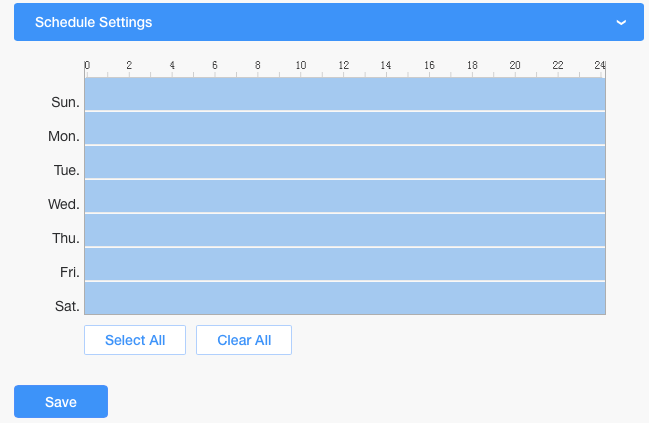 ✅ Under ” Schedule Settings” vælger vi ” Select All” for at havde logs på alle tider, hele ugen.