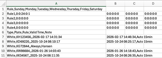Hvis biler ikke er registreret, vil de optræde som ”Visitor”. Hvis dette feldt ikke er ”Enable” og tids sat, vil den ikke logge dem.