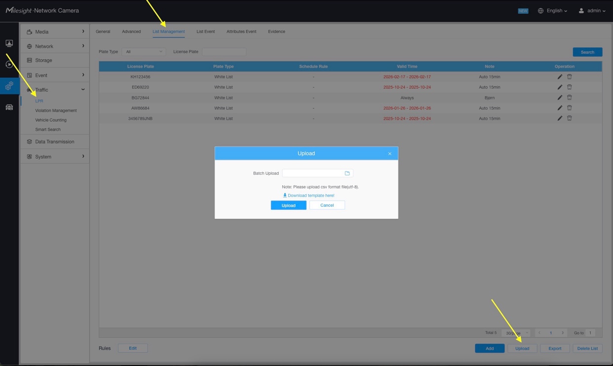 Under: LPR → List Management